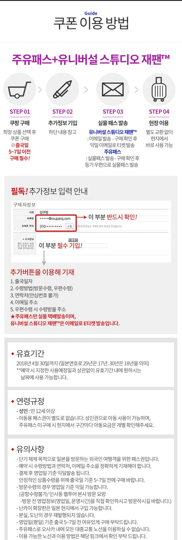 • 본 상품은 실물티켓 상품으로 등기발송 되는 상품입니다. 교환없이 현지에서 바로 이용 가능합니다.