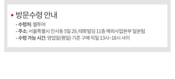 (공항수령불가/ 인사동 웹투어 본사 방문 요망-방문 전 영업정보(영업일, 운영시간)를 직접 확인하시고 방문하시길 바랍니다.)