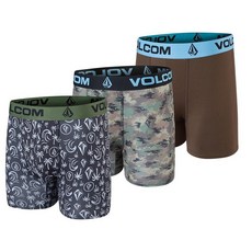 Volcom 남성용 복서 브리프 3팩 폴리 스판덱스 퍼포먼스 플라이리스 서포트 복서 브리프 속옷 블랙/카모플라주/브라운 스몰 138360