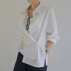 시크폭스 메린 언발 단추 랩셔츠