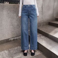 시크폭스 여성용 기본/롱 이첼 논페이드 스판 와이드 데님팬츠
