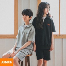 앨빈클로 주니어 AMUSE 반집업 카라 반팔 맨투맨 밴딩 반바지 셋업