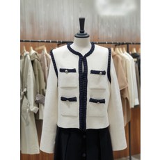 [백화점 홈쇼핑 정품] 지컷 배색 트림 노카라 부클 가디건 7215150204