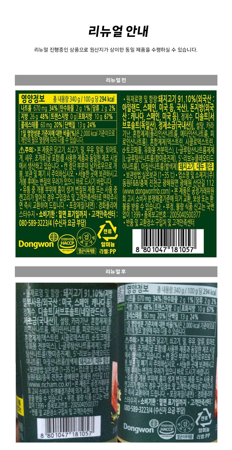 | 제품명 | 리챔 오리지널 | 식품의 유형 | 컨텐츠 참조 |