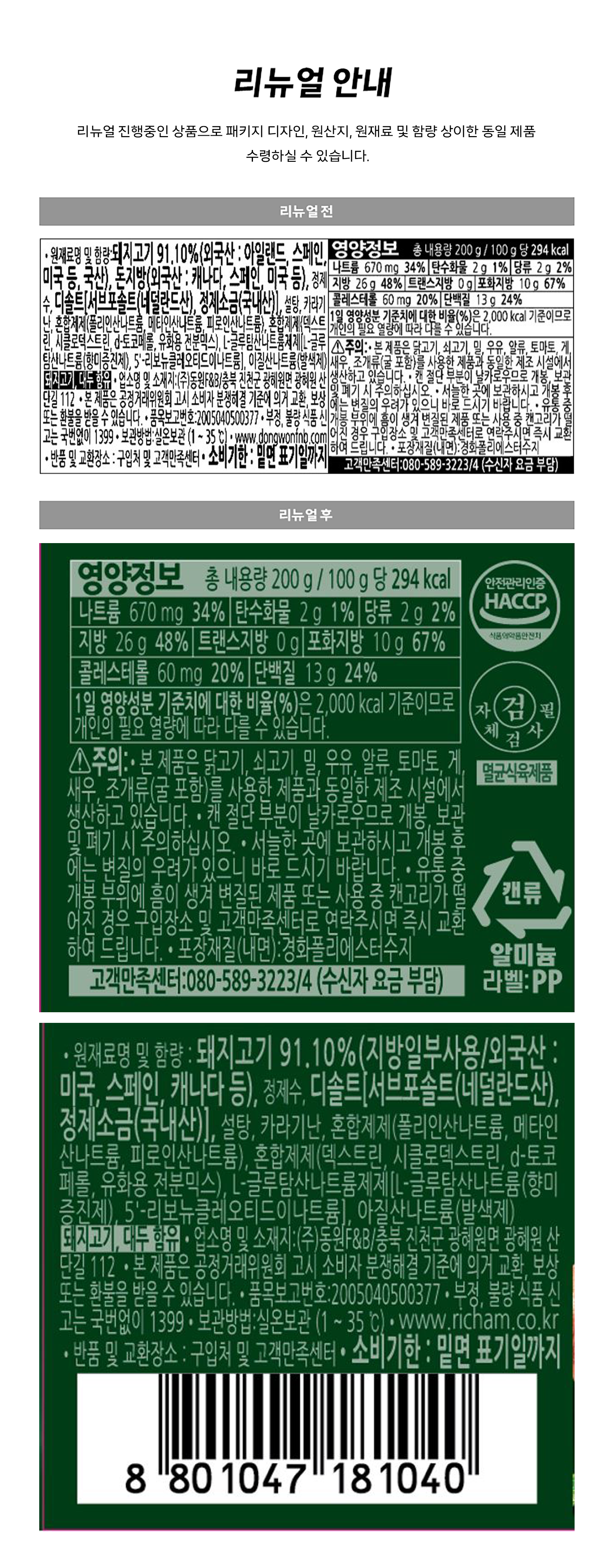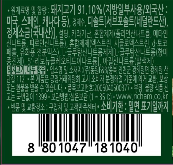 | 제품명 | 리챔 오리지널 | 식품의 유형 | 컨텐츠 참조 |