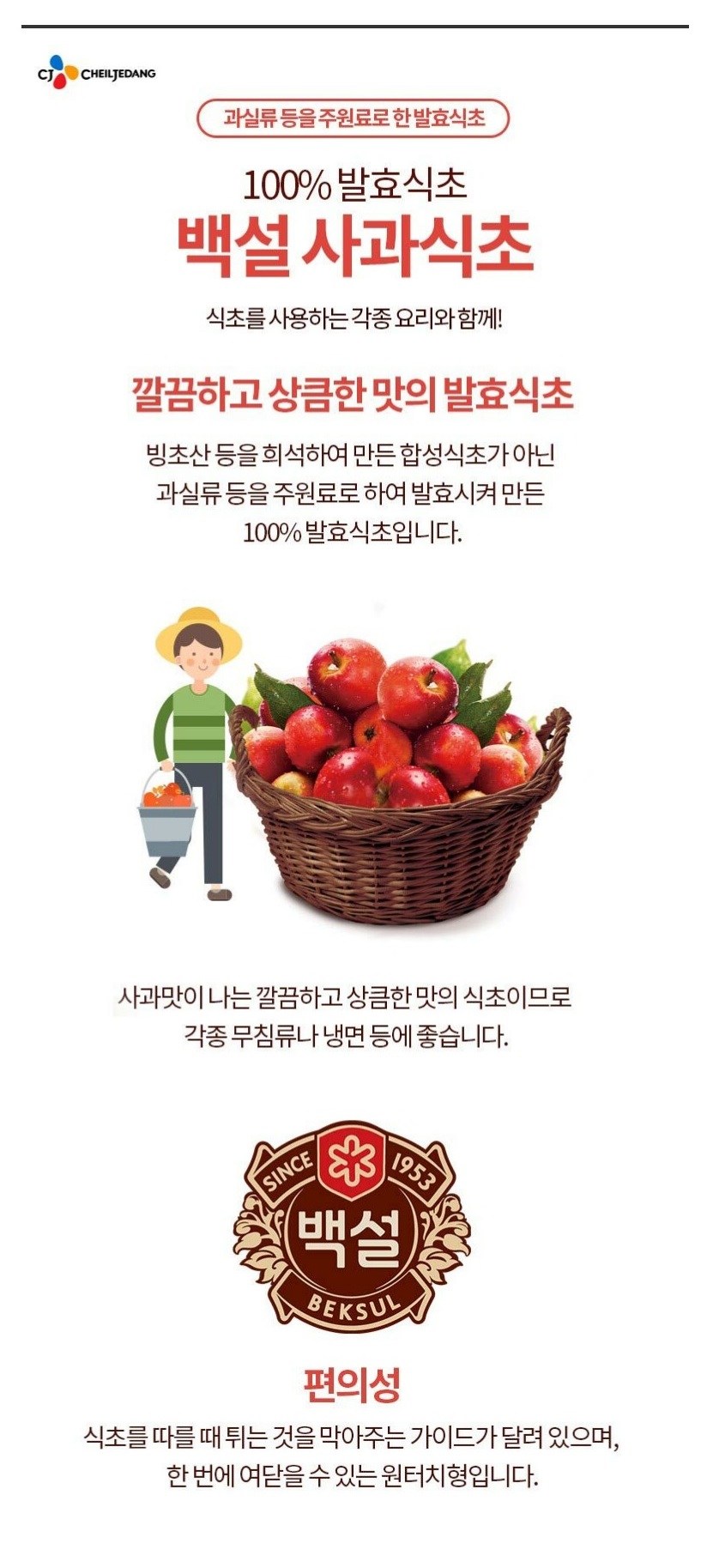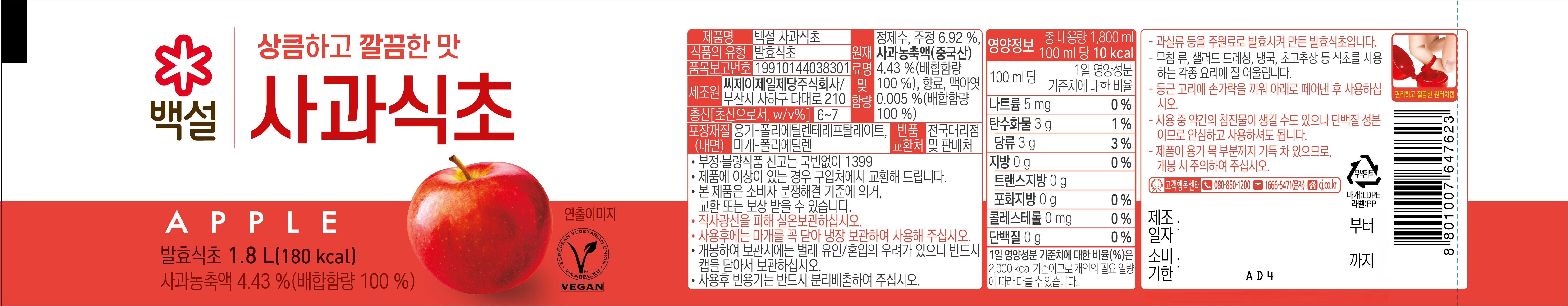 | 제품명 | 백설 사과식초 | 식품의 유형 | 컨텐츠참조 |