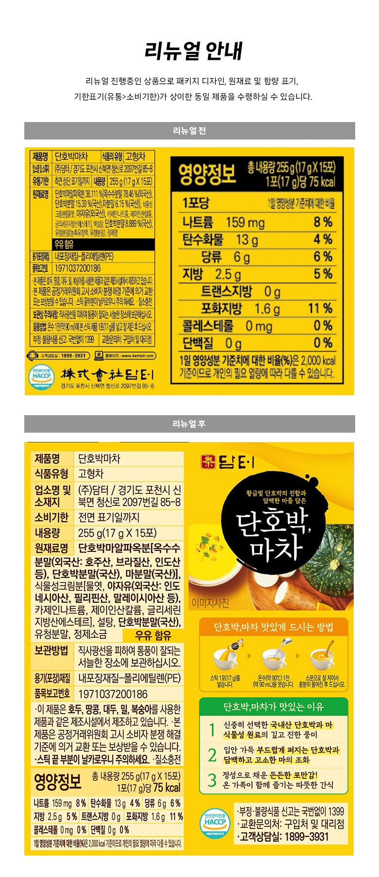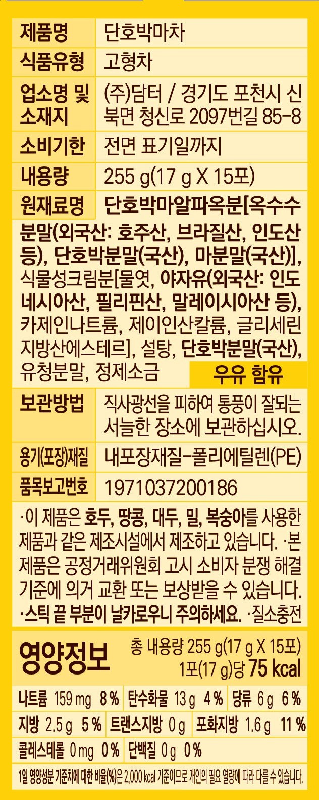 | 포장단위별 내용물의 용량(중량), 수량 | 255g(17g x 15개) x 3개 | 원재료명 및 함량 | 컨텐츠 참조 |