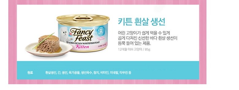 | 품명 및 모델명 | 팬시피스트 키튼 벤더 흰살생선 | 인증/허가 사항 | 사료관리법에 따른 성분등록번호 : 컨텐츠 참조 |