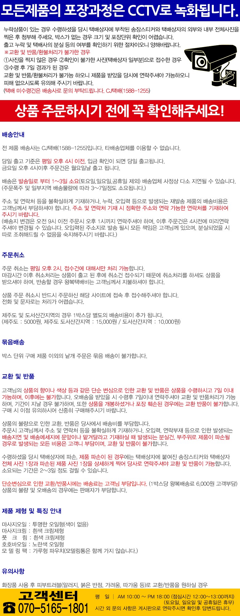 - ㆍ모니터 해상도의 차이로 인해 색상이나 이미지가 실제와 달라, 고객이 단순 변심으로 교환/반품을 무료로 요청하는 경우