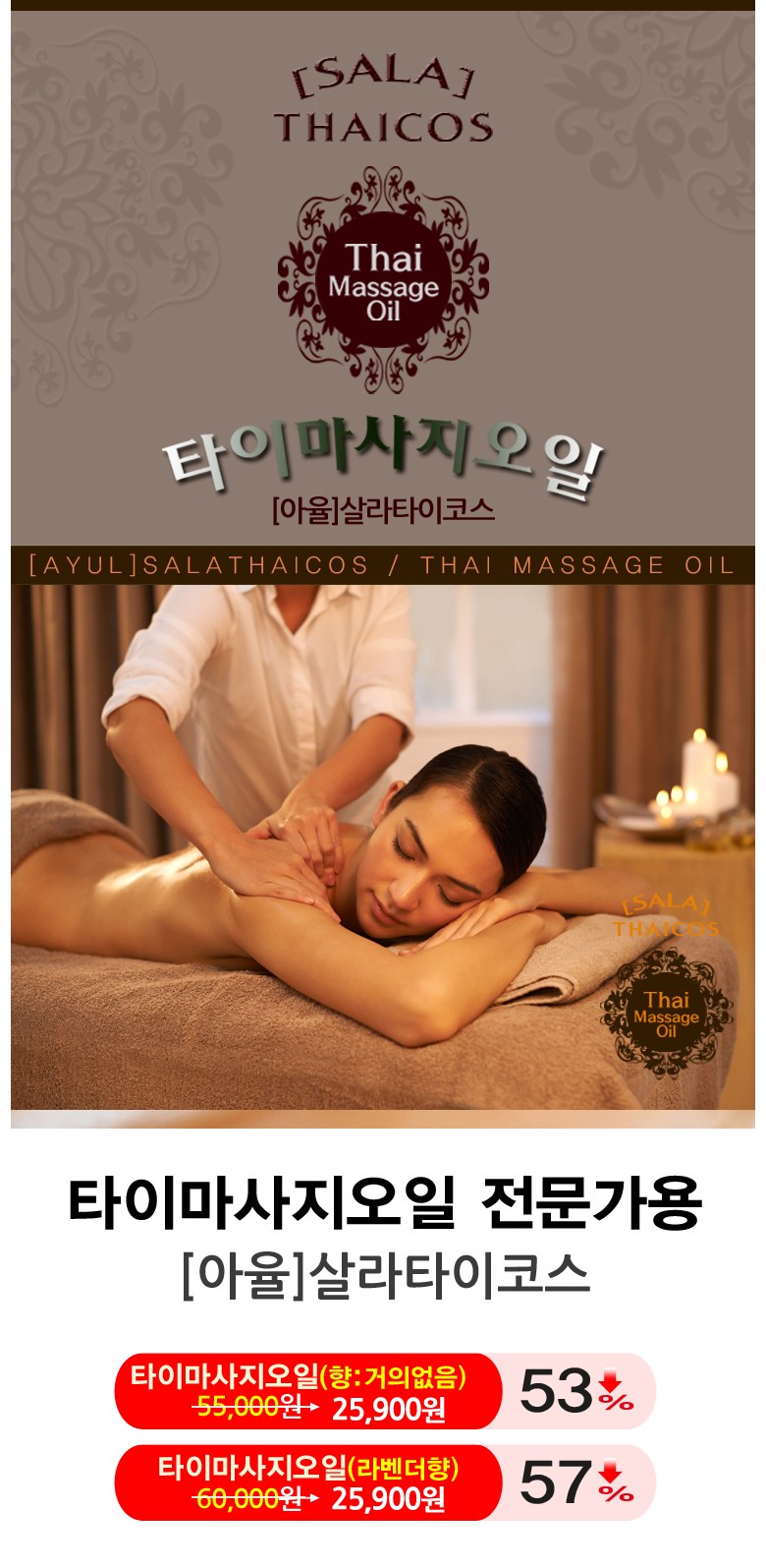 "아유라피" 타이마사지오일은 전통 타이마사지 노하우가