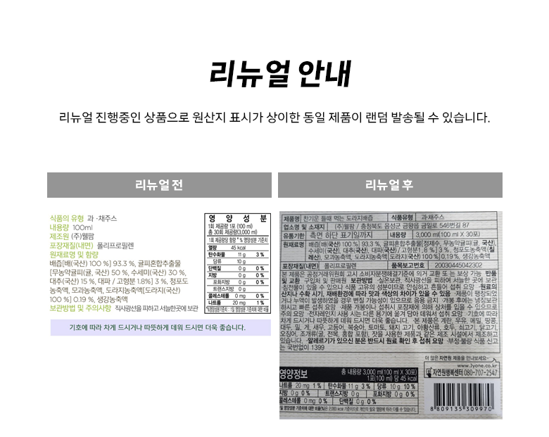 | 생산자 및 소재지 | 컨텐츠 참조 | 제조연월일, 소비기한 또는 품질유지기한 | 소비기한(또는 유통기한) : 2026년 09월 10일 이거나 그 이후인 상품 제조년월일 : 2025년 03월 13일 이후인 제조상품 |