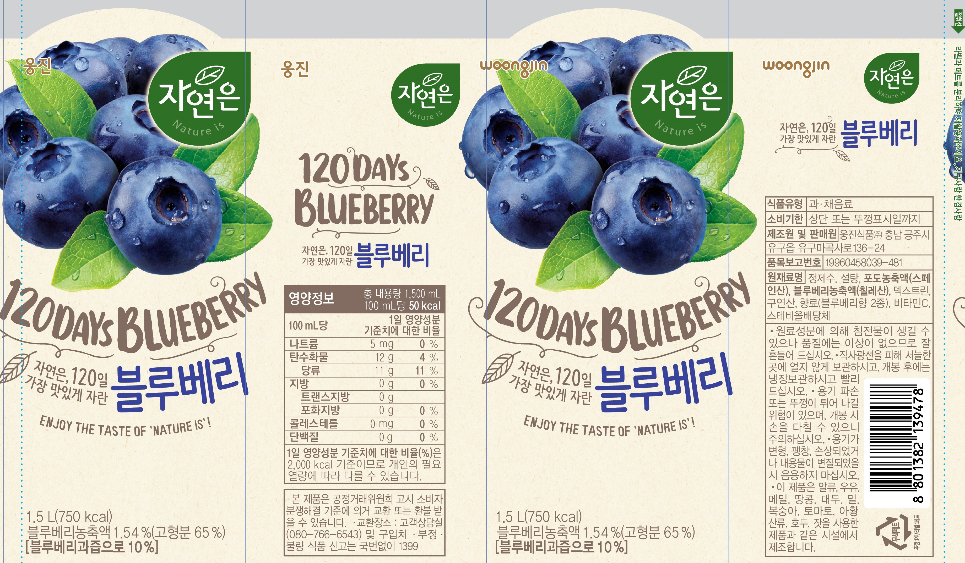 | 제품명 | 자연은 블루베리 | 식품의 유형 | 과채음료 |