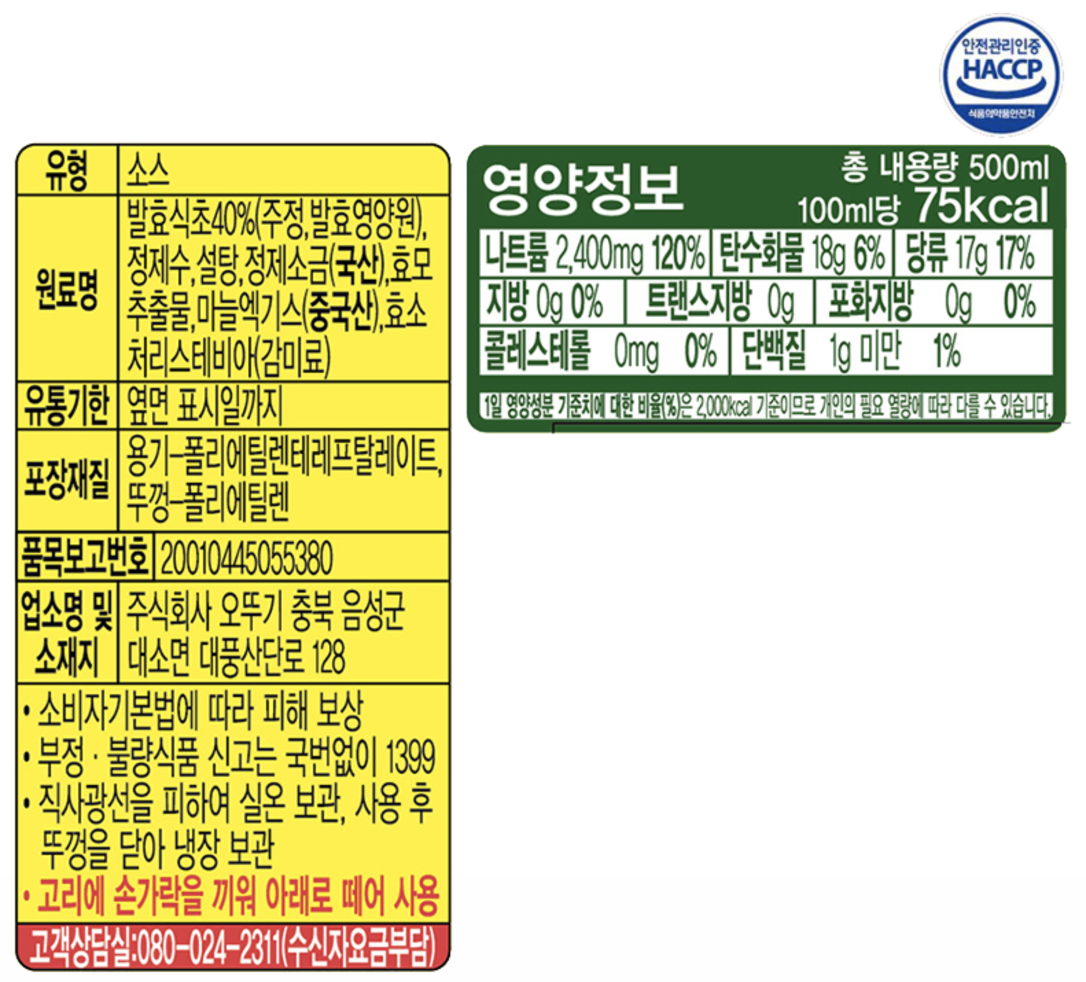 | 포장단위별 내용물의 용량(중량), 수량 | 500ml x 12개,1개 | 원재료명 및 함량 | 컨텐츠 참조 |