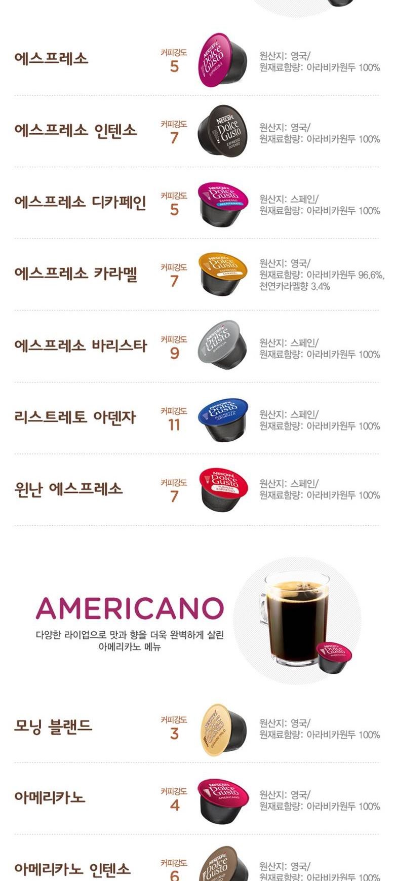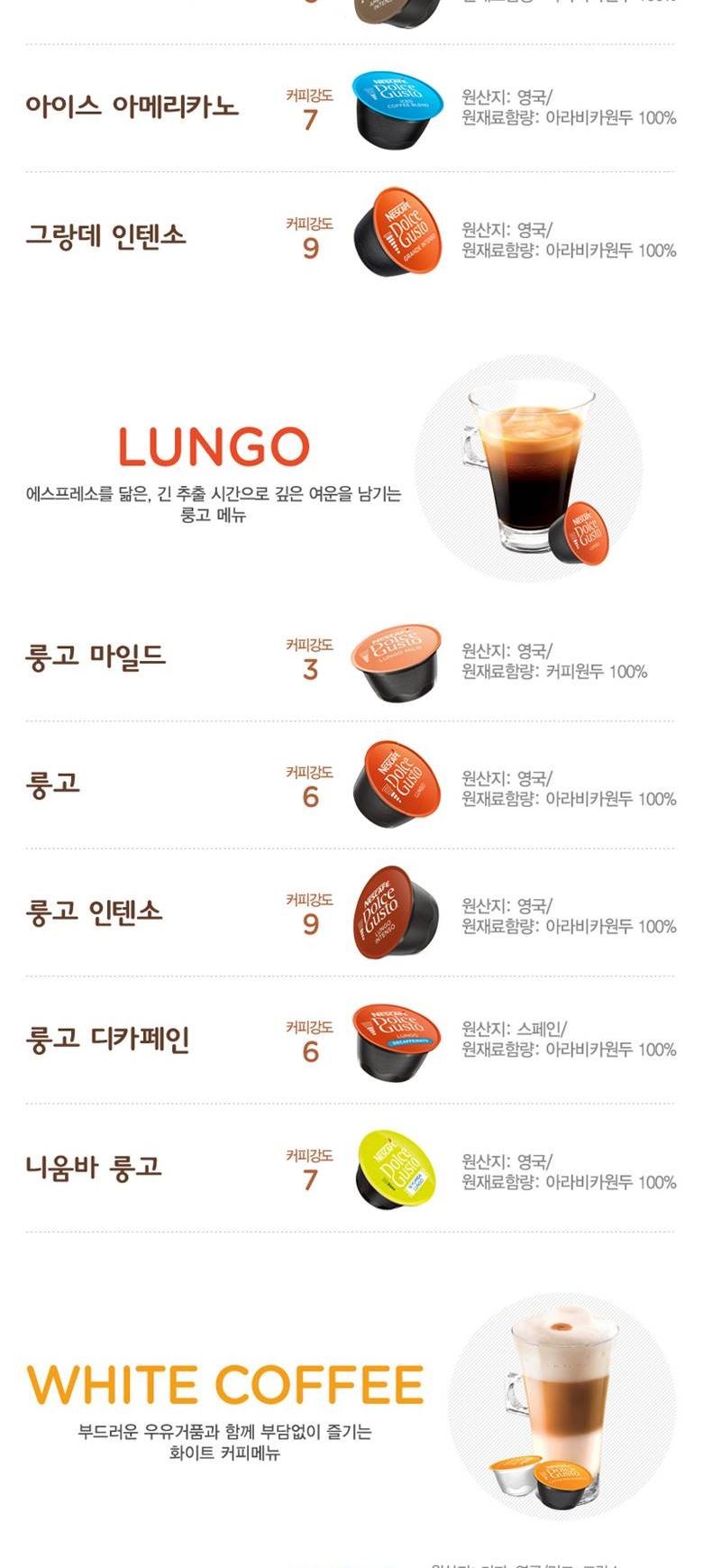 | 제품명 | 네스카페 돌체구스토 룽고 인텐소 | 식품의 유형 | 커피 |