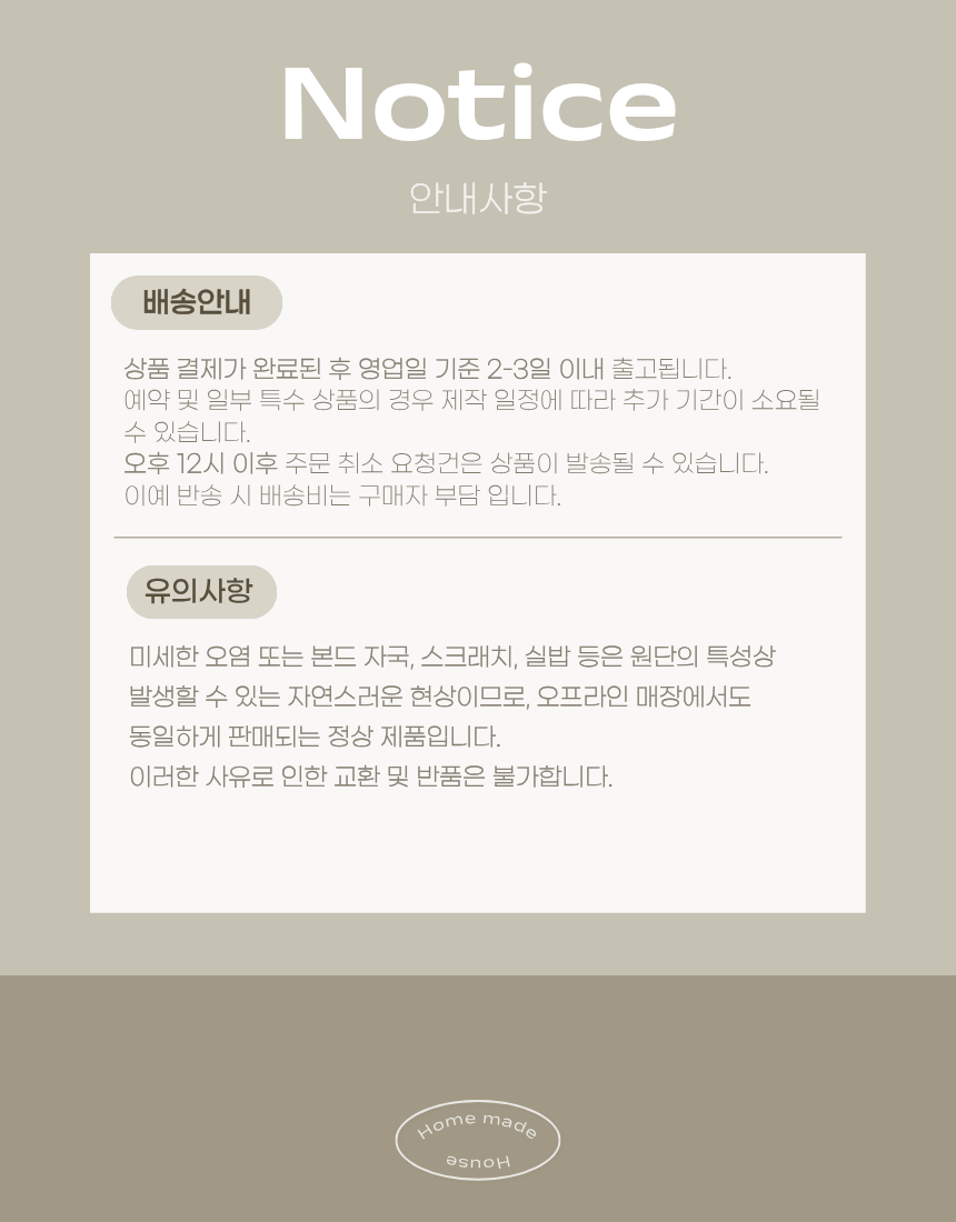 - ㆍ모니터 해상도의 차이로 인해 색상이나 이미지가 실제와 달라, 고객이 단순 변심으로 교환/반품을 무료로 요청하는 경우