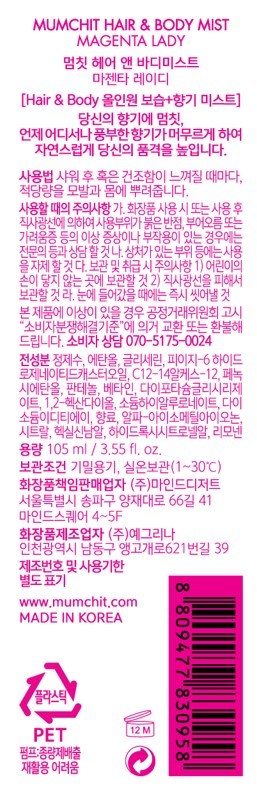 | 화장품제조업자, 화장품책임판매업자 및 맞춤형화장품판매업자 | 컨텐츠 참조 | 제조국 | 대한민국 |