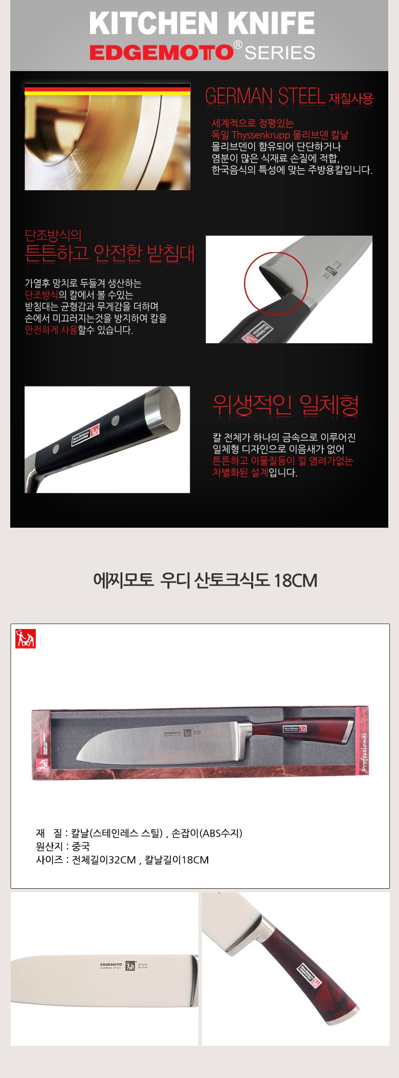 | 품명 및 모델명 | 에찌모토_ 우디산토크식도 18CM | 재질 | 칼날: 스테인레스 스틸 손잡이 : ABS수지 |