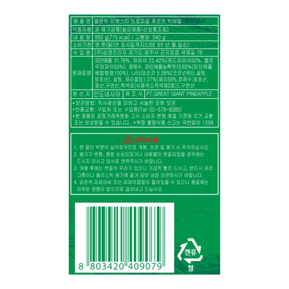 | 포장단위별 내용물의 용량(중량), 수량 | 850g x 3개 | 원재료명 및 함량 | 컨텐츠 참조 |