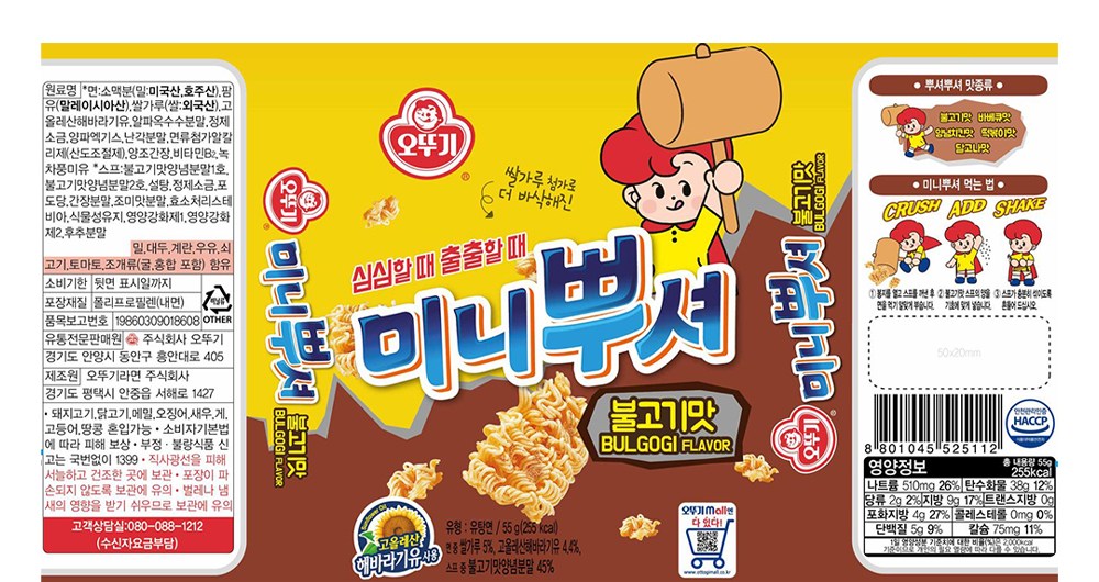 | 제품명 | 미니뿌셔 불고기맛 | 식품의 유형 | 유탕면 |