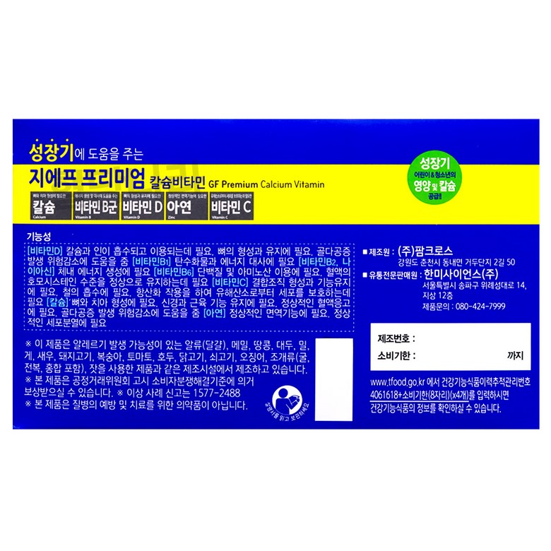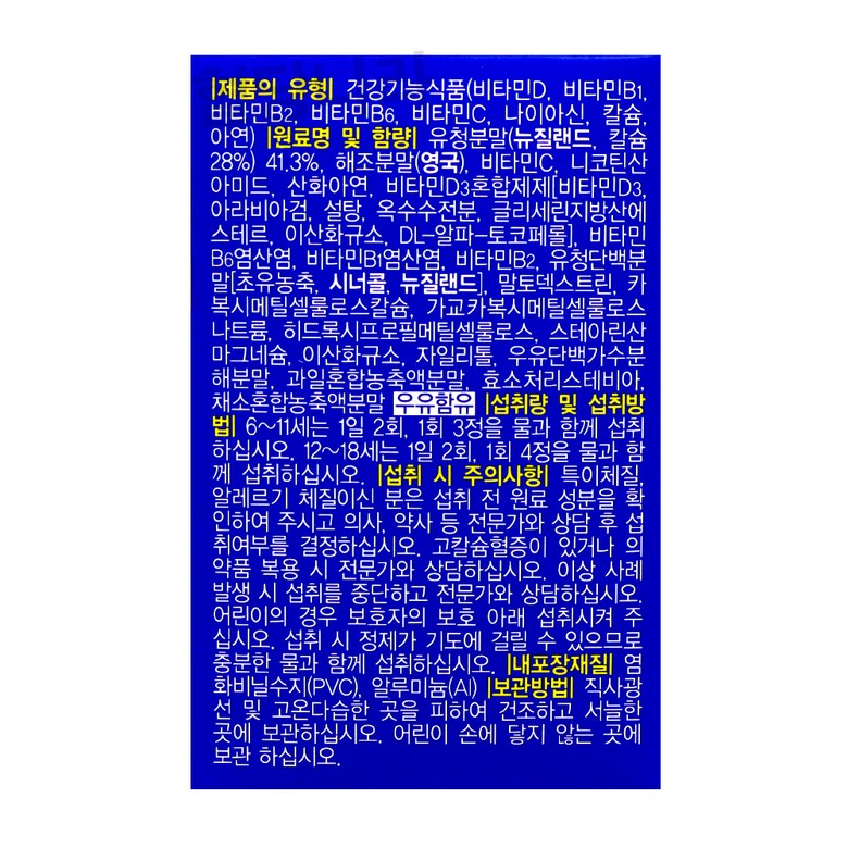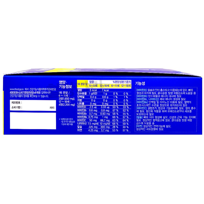 - 건강식품 성분: 칼슘, 아연, 비타민 D