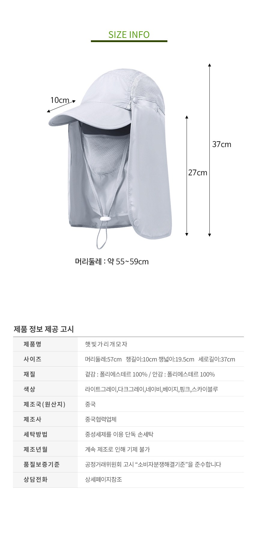 | 품명 및 모델명 | 햇빛가리개 모자 | KC 인증정보 | 유/KC마크 |