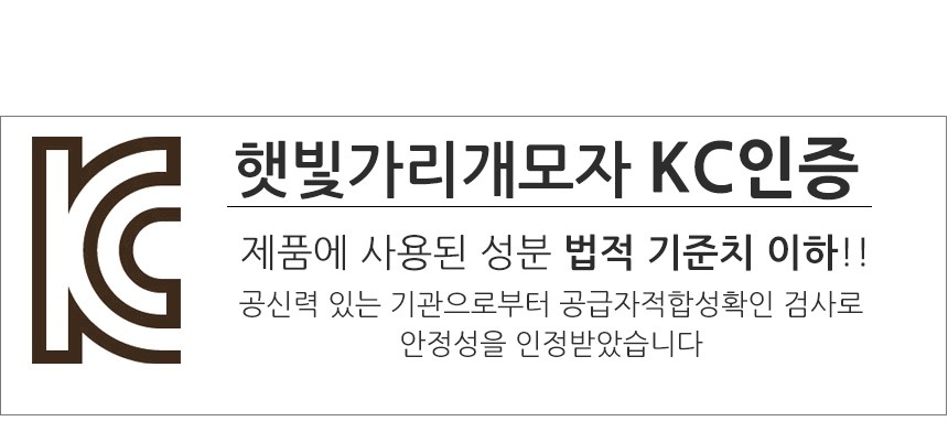 | 품명 및 모델명 | 햇빛가리개 모자 | KC 인증정보 | 유/KC마크 |