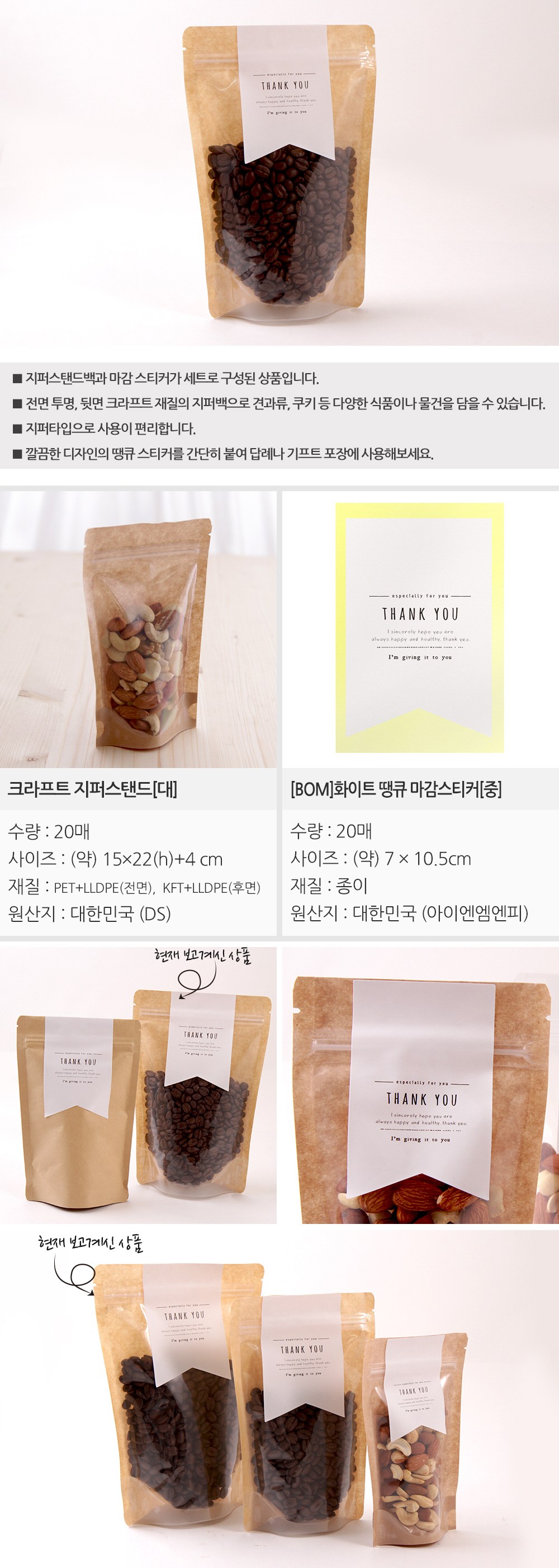 화이트 땡큐 크라프트 지퍼스탠드 기프트세트, 대(L), 20세트