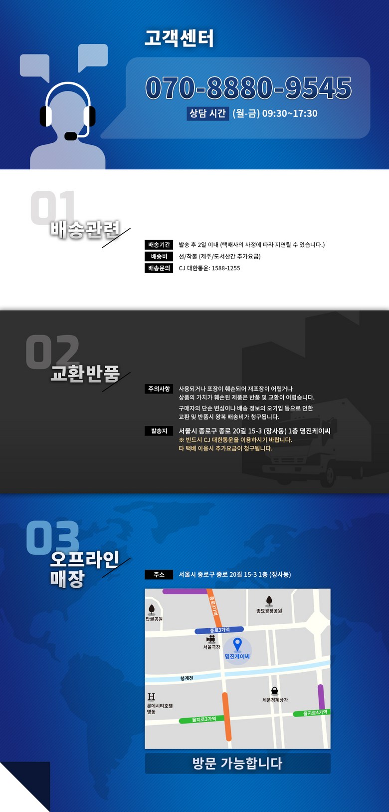 | 교환/반품 비용 (왕복비용) | 7,000원 - 단, 고객 변심의 경우에만 발생 - 도서산간 지역 배송불가 |