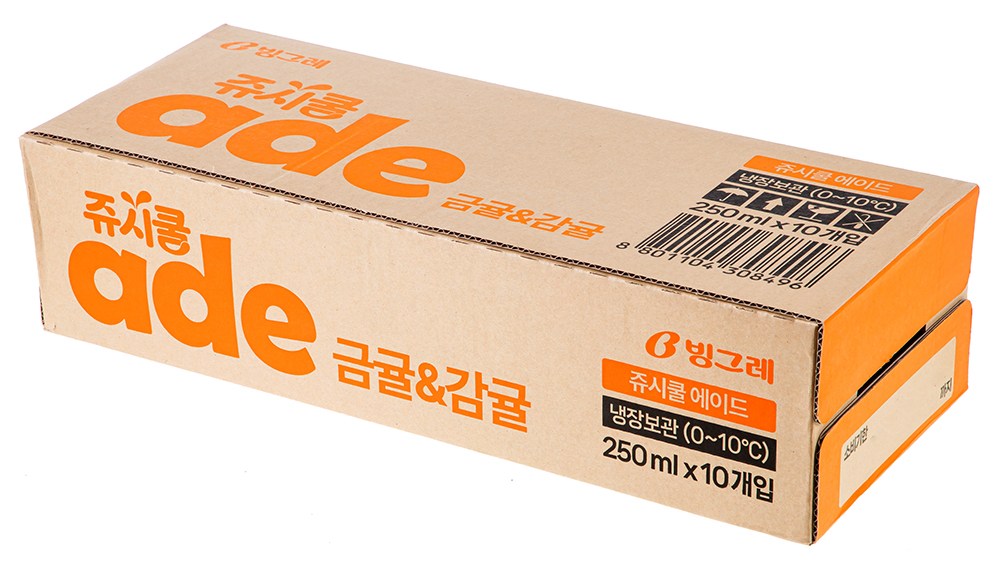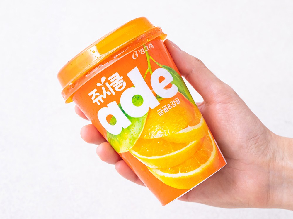 빙그레가 선사하는 기분 좋은 한 모금을 만나보세요. 쥬시쿨 금귤&감귤 에이드는 감귤 농축액과 금귤 주스로 만들어 본연의 새콤달콤한 맛이 진하게 녹아들어 간 음료예요. 아이들을 위한 간식으로도 참 좋은 쥬시쿨 금귤&감귤 에이드. 소중한 하루를 더욱 상쾌하고 산뜻하게 만들어줄 거예요.