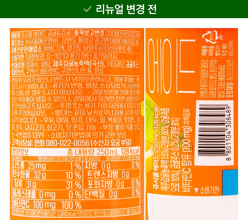 | - 감귤 농축액, 금귤 주스 함유 | |