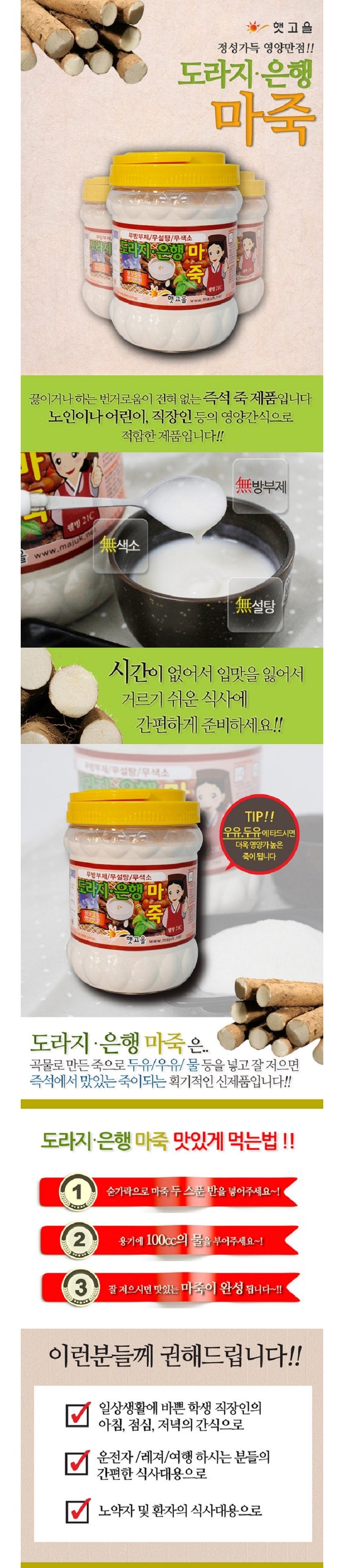 | 제품명 | 햇고을 도라지 은행 마죽 | 식품의 유형 | 상품 상세내역 참조 |