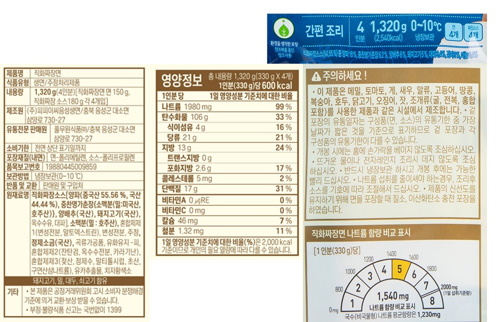 | 제품명 | 직화짜장면 | 식품의 유형 | 컨텐츠참조 |