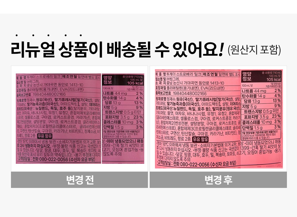 | 생산자 및 소재지 | 컨텐츠 참조 | 제조연월일, 소비기한 또는 품질유지기한 | 제조년월일 : 2025년 10월 24일 이후인 제조상품 |