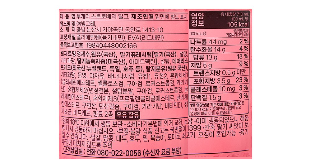 원유, 딸기퓨레시럽 함유