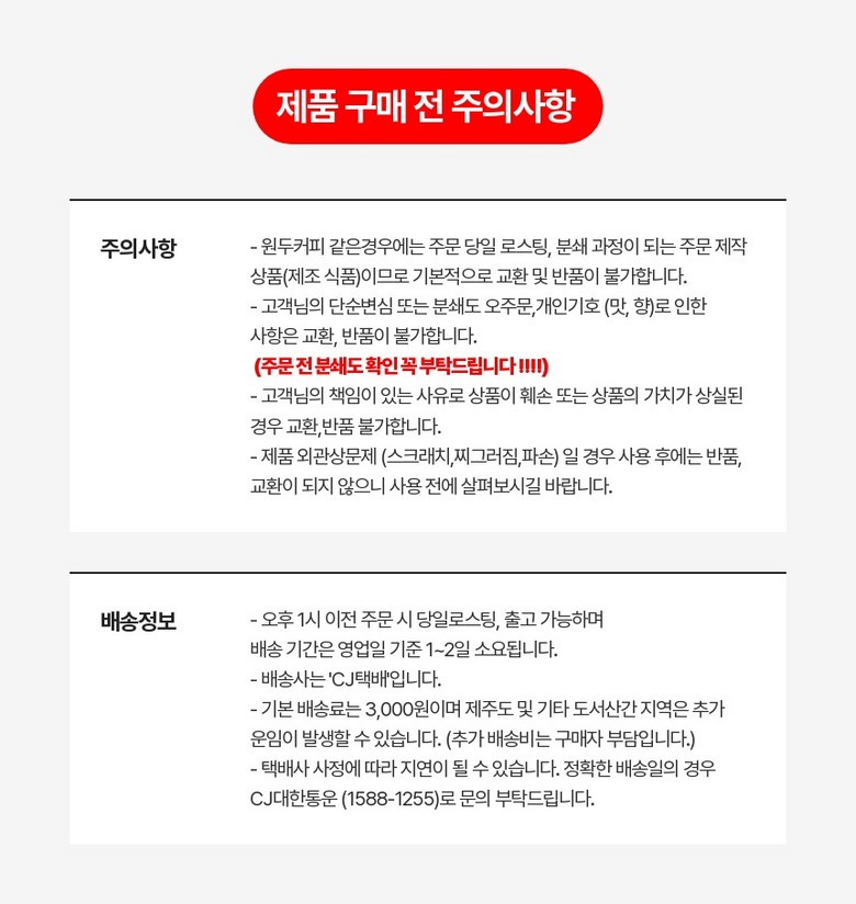 | 교환/반품 비용 (왕복비용) | 6,000원 - 단, 고객 변심의 경우에만 발생 - 도서산간 및 일부 지역 추가비용 발생 |