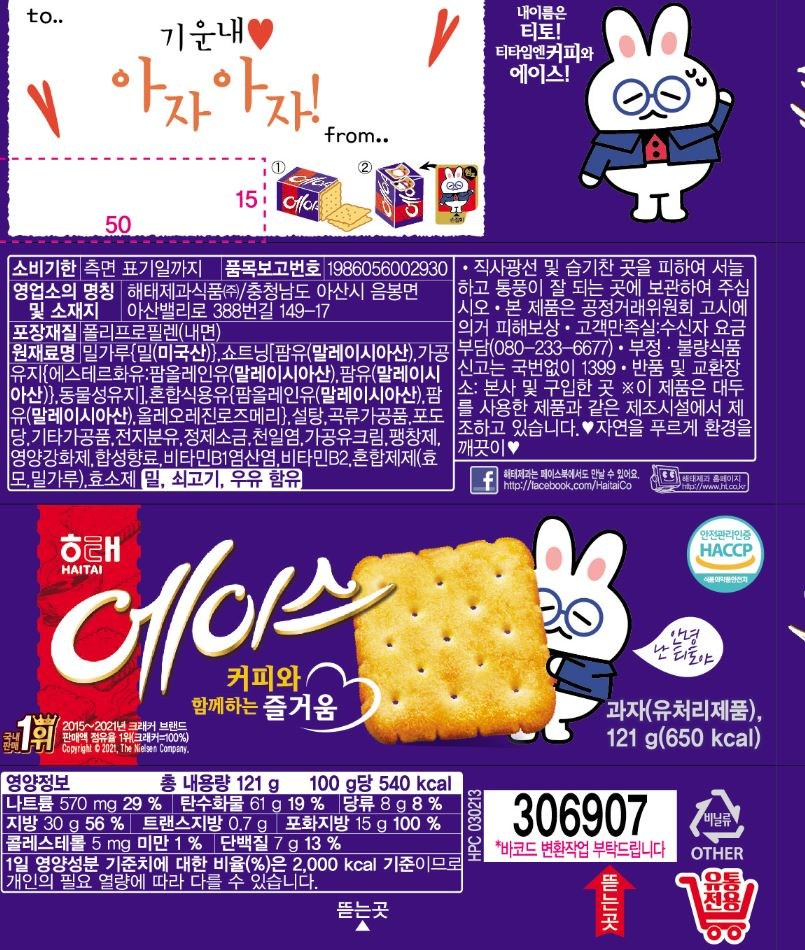 | 제품명 | 에이스 | 식품의 유형 | 과자(유처리제품) |