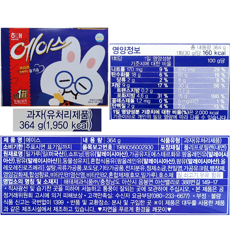| 생산자 및 소재지 | 상품 상세페이지 참조 | 제조연월일, 소비기한 또는 품질유지기한 | 상품 상세페이지 참조 |