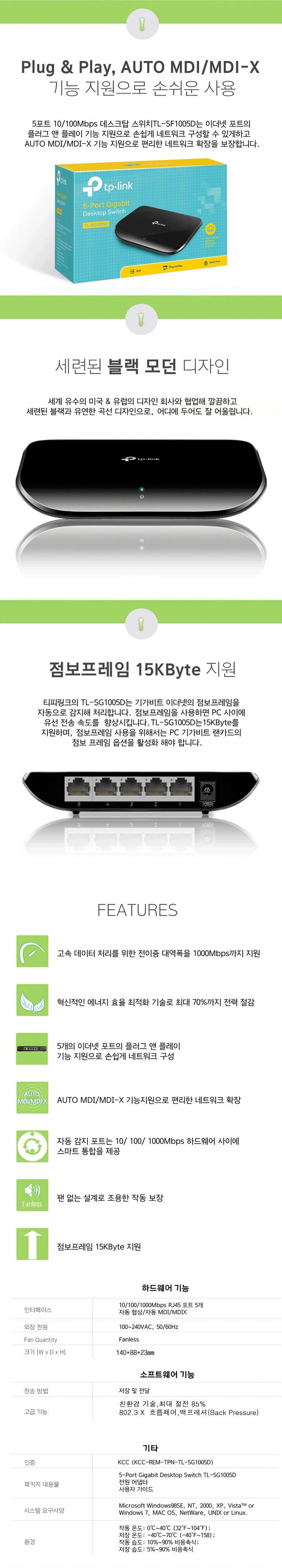 | 품명 및 모델명 | 스위칭허브 / TL-SG1005D | KC 인증정보 | 본품 : HPN-TL-SG1005D / 어댑터 : HU10929-17003A, MSIP-REM-TPN-T050060-2H1 |