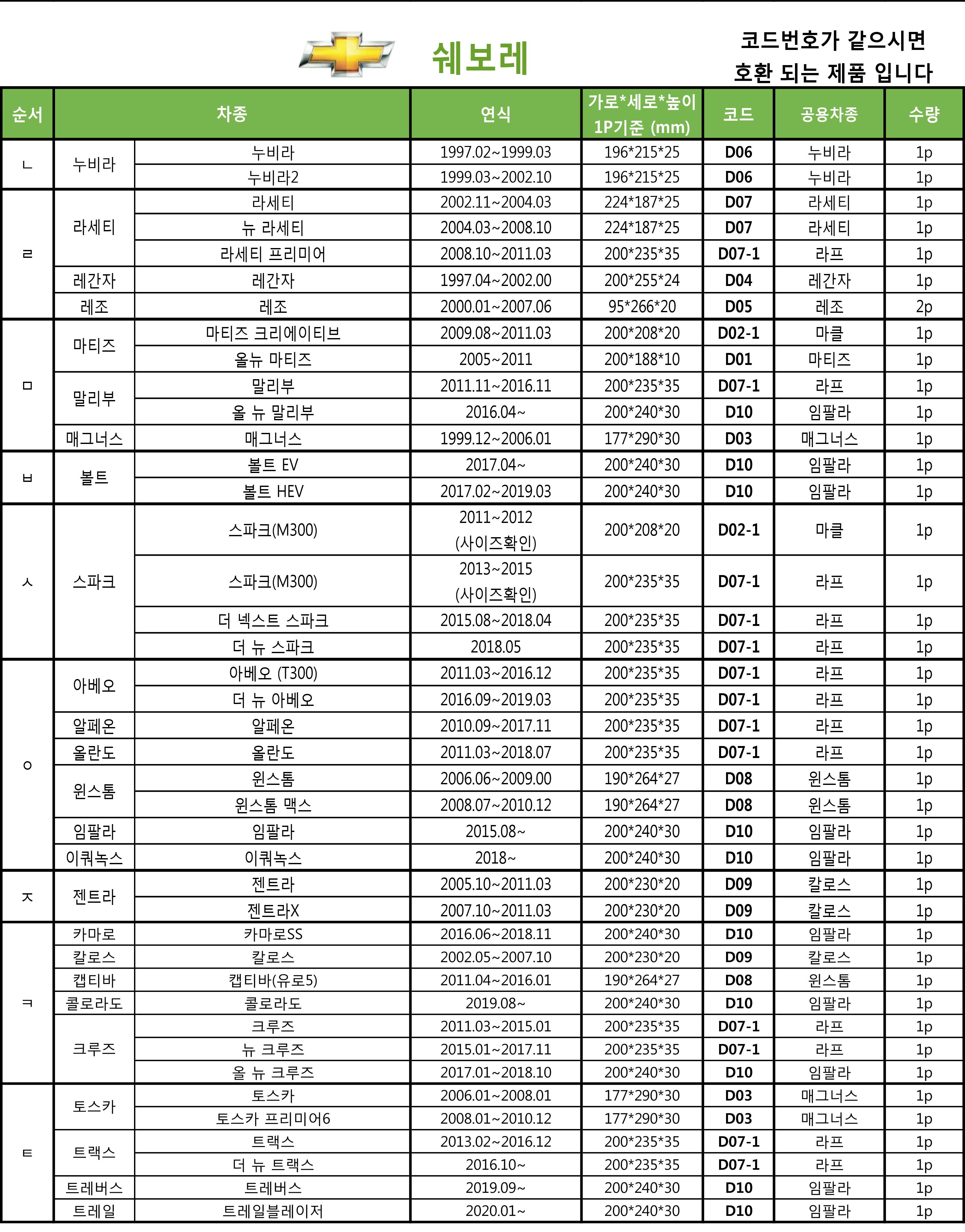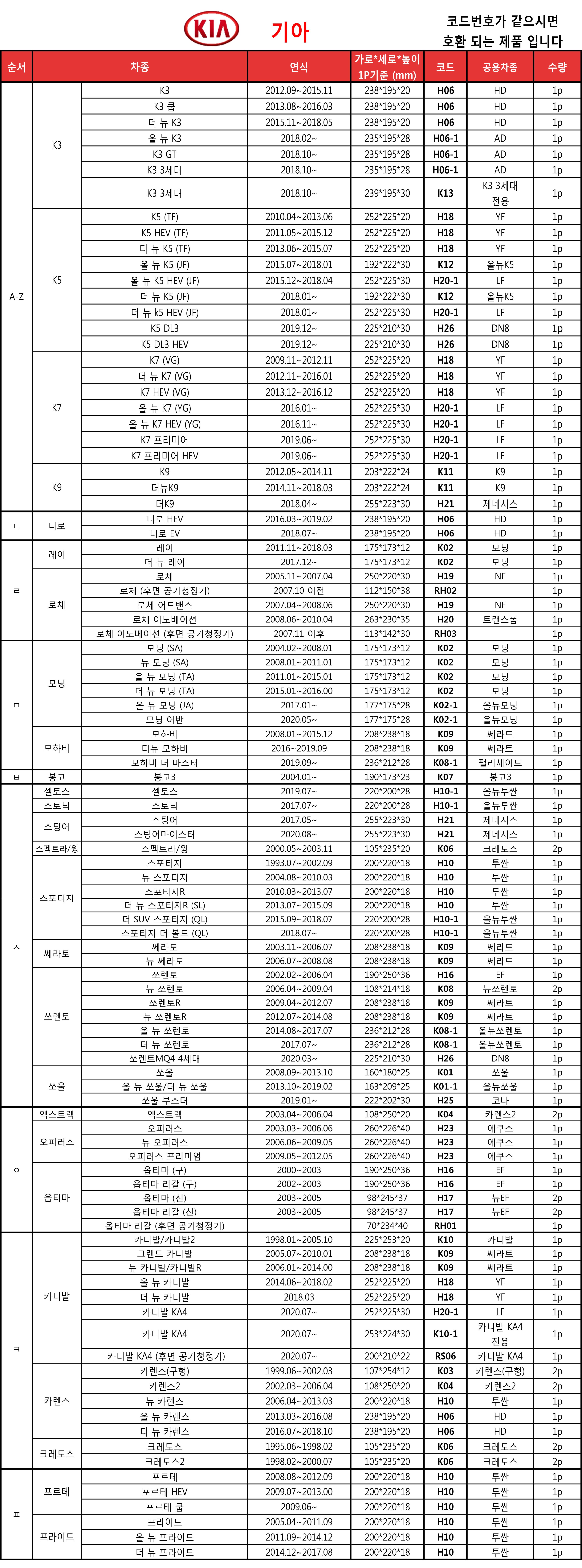 | KC 인증정보(자동차관리법에 따른 자기인증 대상 자동차부품에 한함) | 해당없음 | 제조자(수입자) | 알 수 없음(업체미제공) |