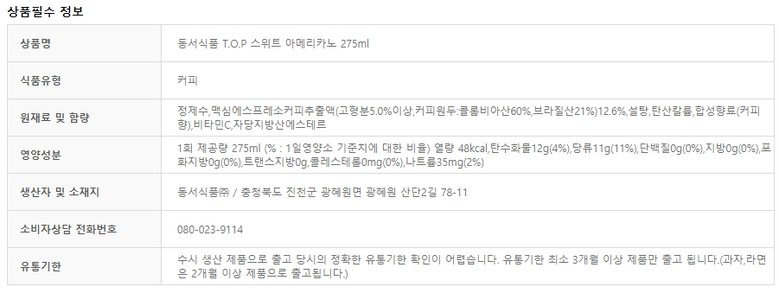 | 생산자 및 소재지 | 상품 상세페이지 참조 | 제조연월일, 소비기한 또는 품질유지기한 | 상품 상세페이지 참조 |