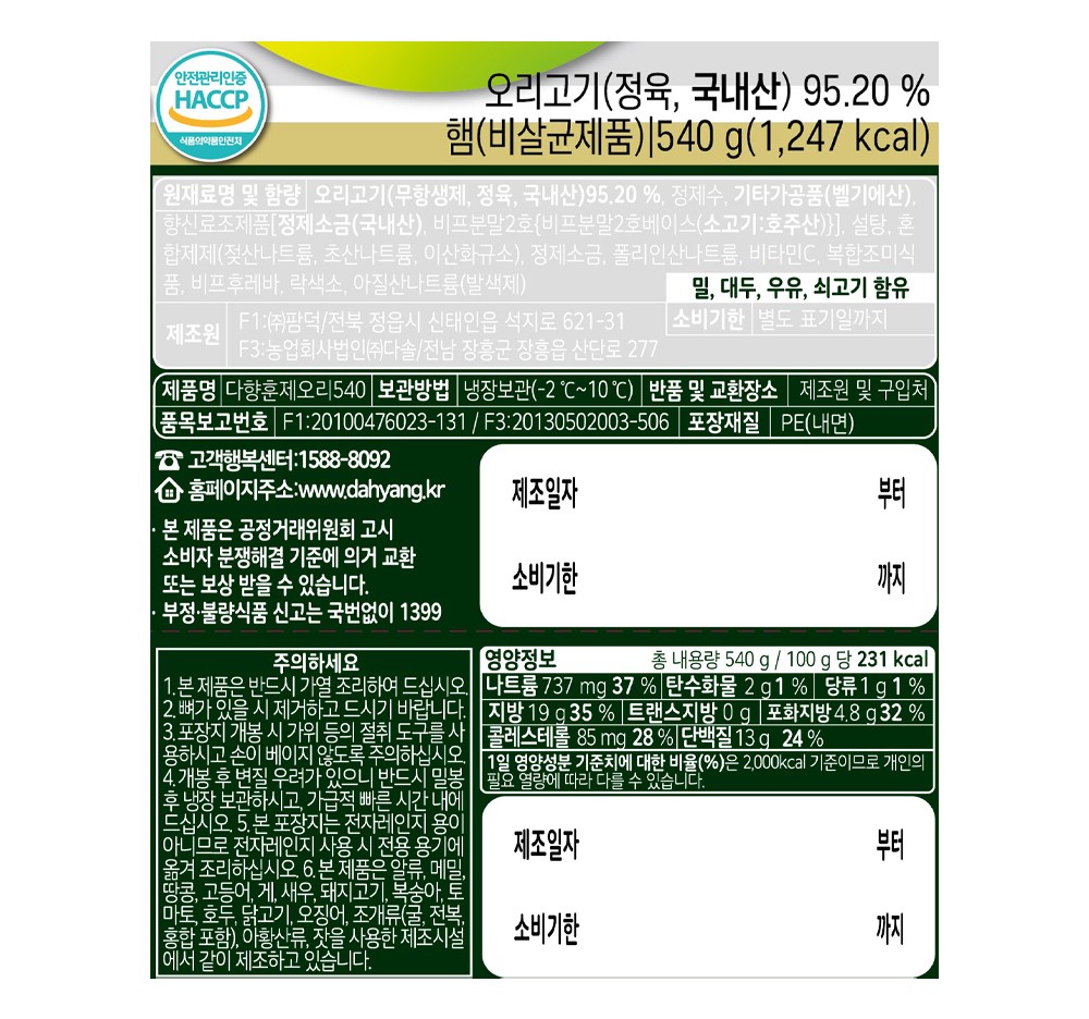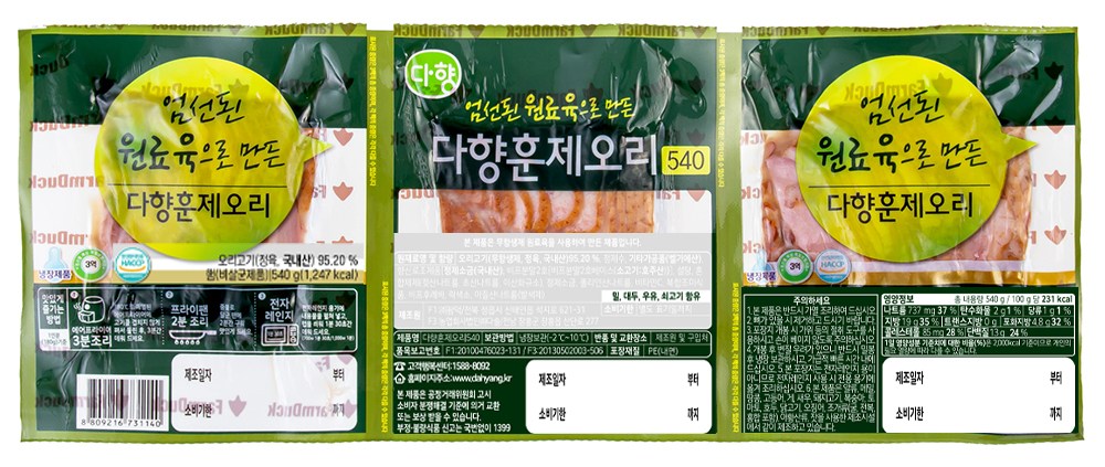 | 제품명 | 다향훈제오리 | 식품의 유형 | 컨텐츠참조 |