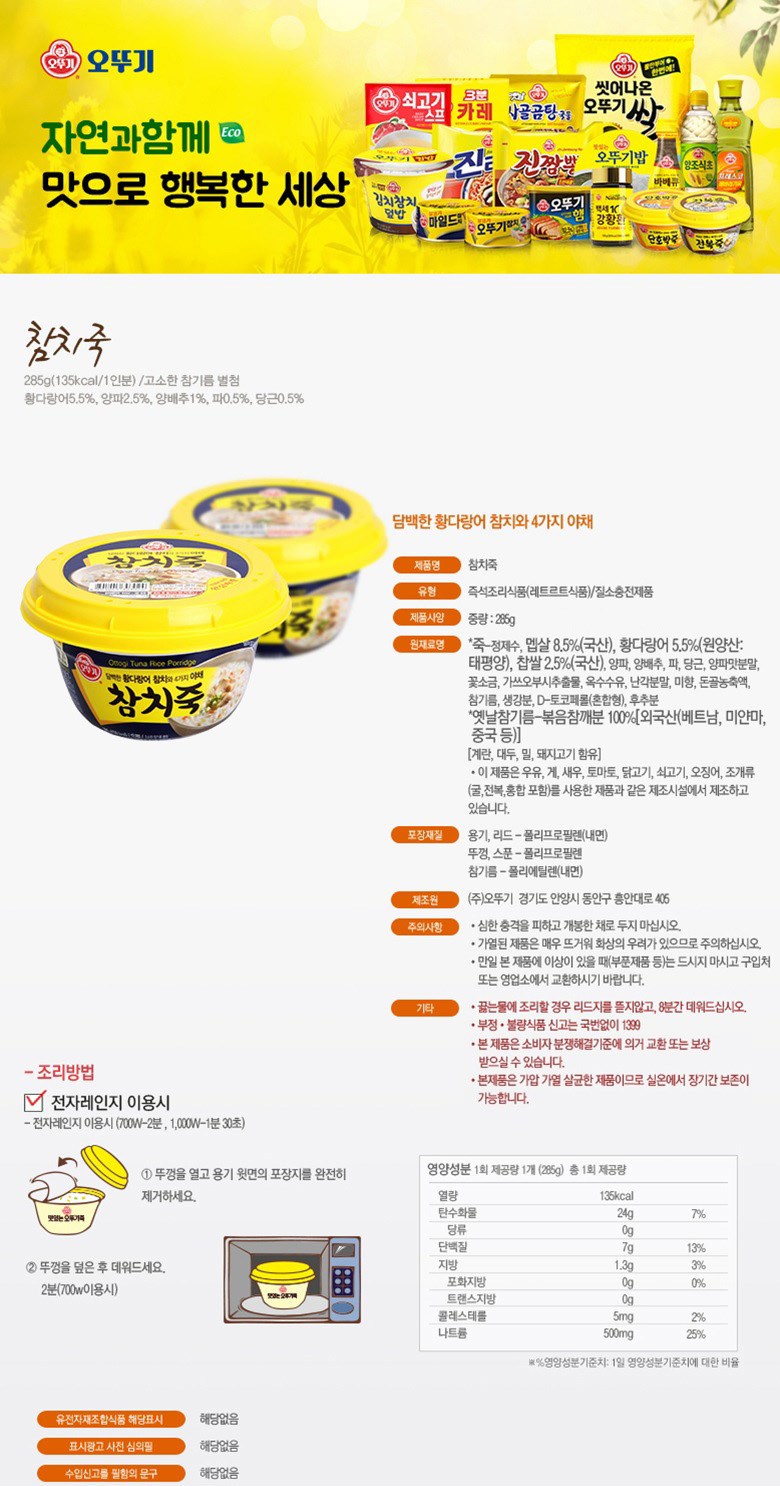 | 제품명 | 참치죽 | 식품의 유형 | 즉석조리식품 |
