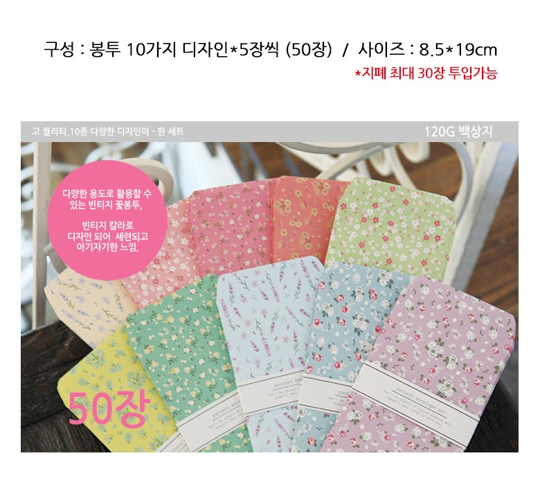 | 품명 및 모델명 | 프롬앤투 꽃인쇄용돈봉투 50종 fb501set 1세트 | 인증/허가 사항 | 해당없음 |