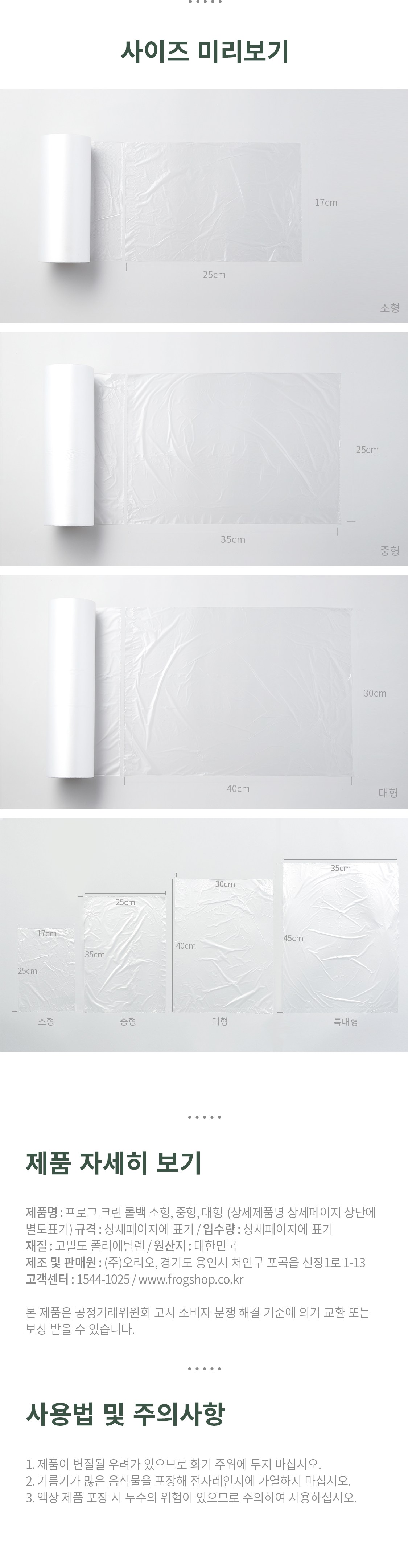 | 구성품 | 프로그 크린 위생 롤백 3종 세트 : 소형 200매입 + 중형 200매입 + 대형 200매입 | 크기 | 컨텐츠참조 |