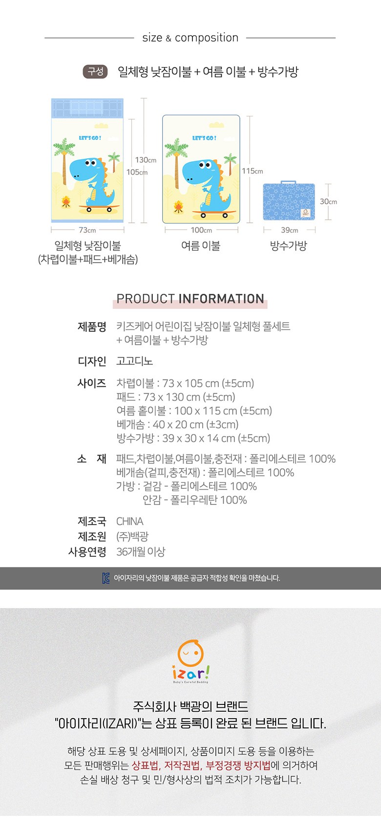 | 품명 및 모델명 | 아이자리 일체형 낮잠이불 풀세트 가방형 | KC 인증정보 | 유/KC마크 |