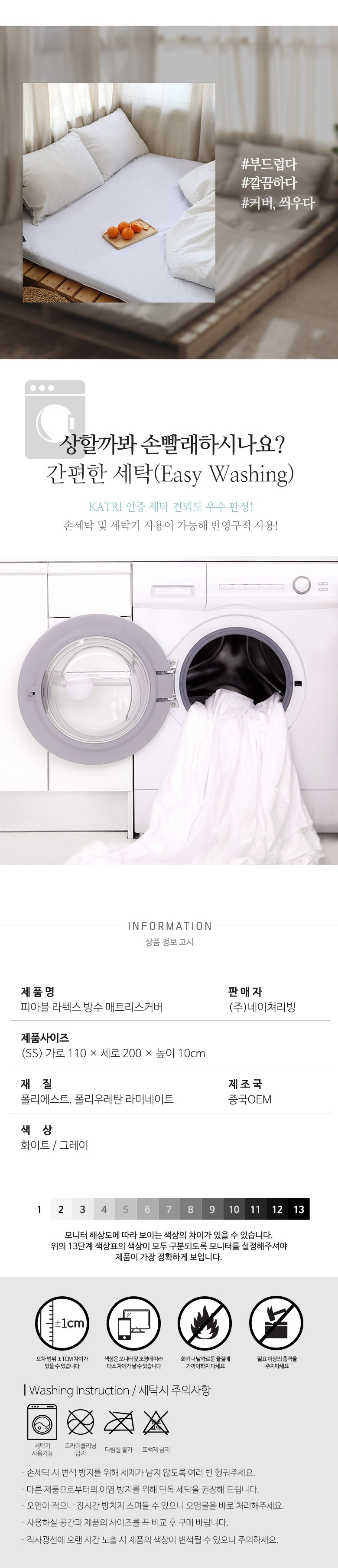 | 품명 및 모델명 | 피아블 라텍스 방수 매트리스커버 | KC 인증정보 | 유/ KC마크 |