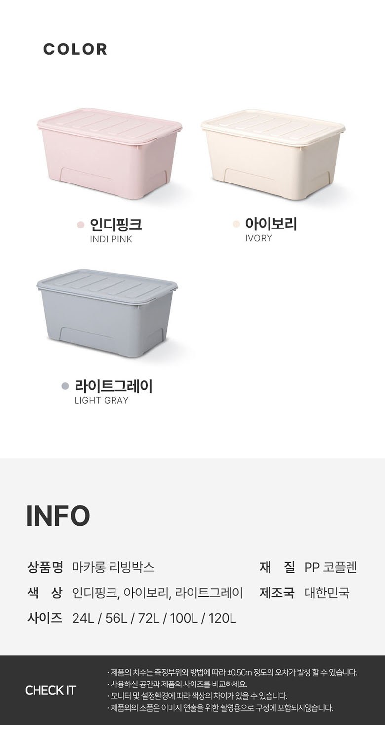 | 품명 및 모델명 | 마카롱 리빙박스 100L 아이보리 2개 | 인증/허가 사항 | 해당없음 |