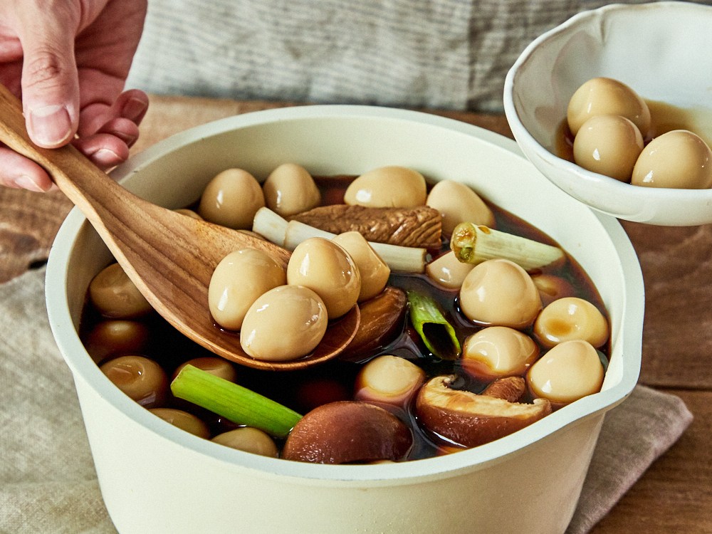4. 고기, 메추리알, 마늘을 넣고 10분간 끓여주세요.