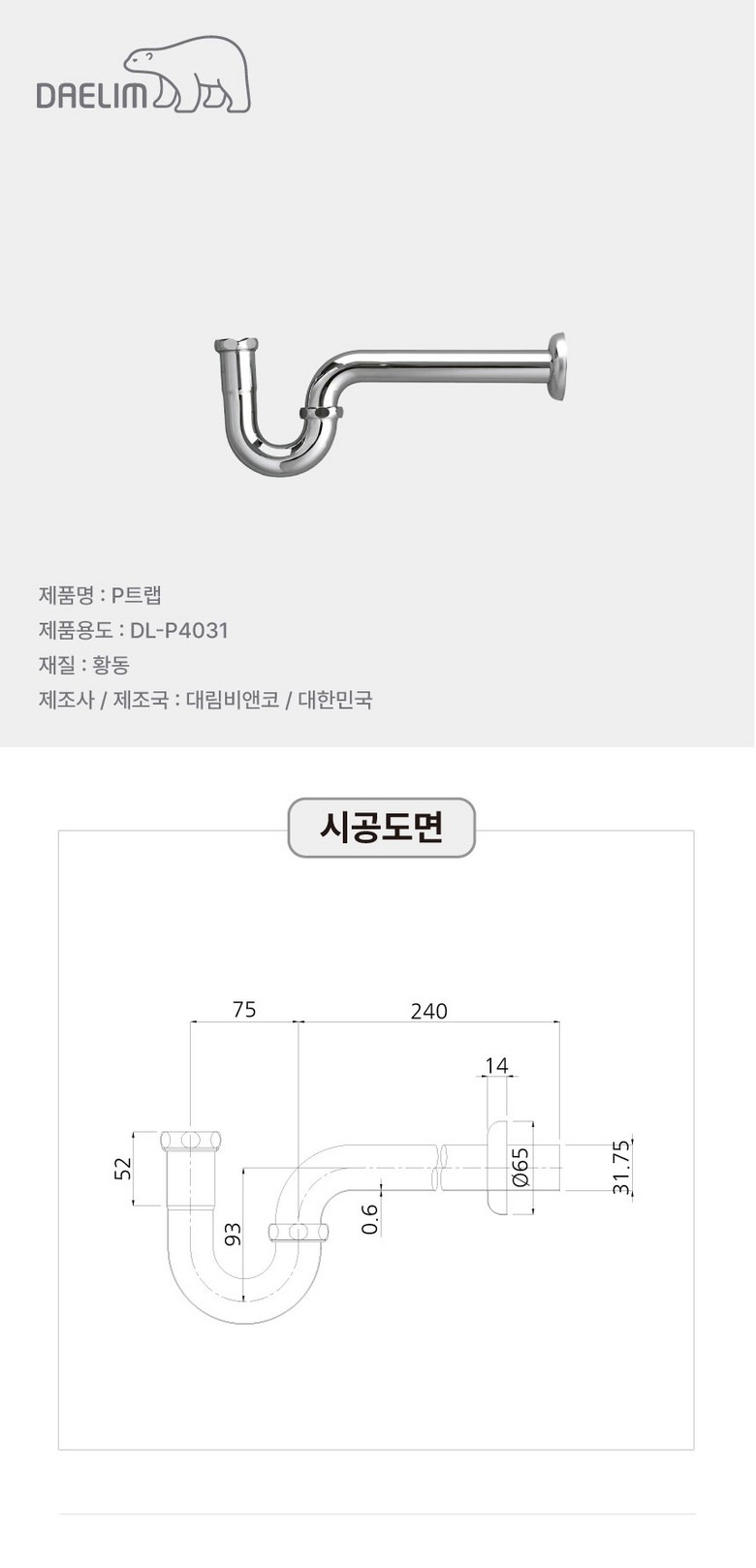 | 품명 및 모델명 | 대림바스 P 트랩 DL-P4031 | KC 인증정보 | 상품 상세페이지 참조 |