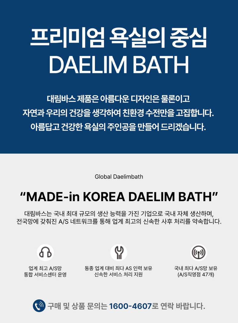 | 제조자(수입자) | 대림바스 / 에스앤씨 솔루션 주식회사 | 제조국 | 대한민국 |